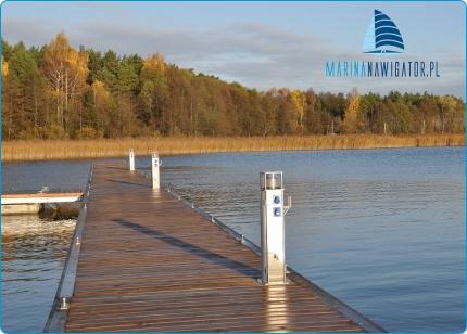 Oświetlony pomost w Marinie Nawigator nad jeziorem Tałty
