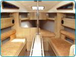 - komplet żagli: grot na pełzaczach, fok z rolerem na sztywnym sztagu, kabestany samoknagujące, pokrowce bomowe z "Lazy Jacky'ami",sztormrelingi, bramka do opuszczania i stawiania masztu z wantami w osi obrotu, instalacja elektryczna: oświetlenie 12V, akumulator, gniazdo 12V, prostownik, przedłużacz 230V - 15 m, gniazdo 230V (działa po podłączeniu do sieci)