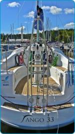 Jacht TANGO 33 - największy model z całej serii jachtów typu Tango o klasycznej i harmonijnej lini kadłuba. Bardzo przestronne wnętrze z 3 zamykanymi kabinami oraz udogodnieniami typu klimatyzacja, ogrzewanie, lodówka, ciepła woda, prysznic, toaleta morska elektryczna dają maksimum komfortu bytowania. Bezpieczeństwo zapewnia system refowania grota z kokpitu. Jacht Tango 33 to idealny kompromis doskonałych walorów nautycznych i hotelowych. Jest to pierwsze TANGO 33 w ofercie firm czarterowych na Mazurach !!! Jesteśmy pewni, że wspaniale dopełni popularną serię modelu "TANGO" na Mazurach.