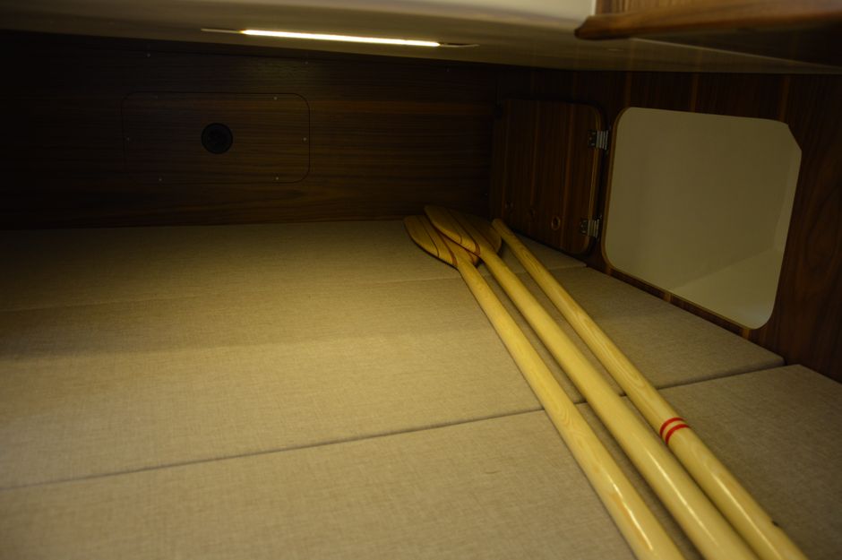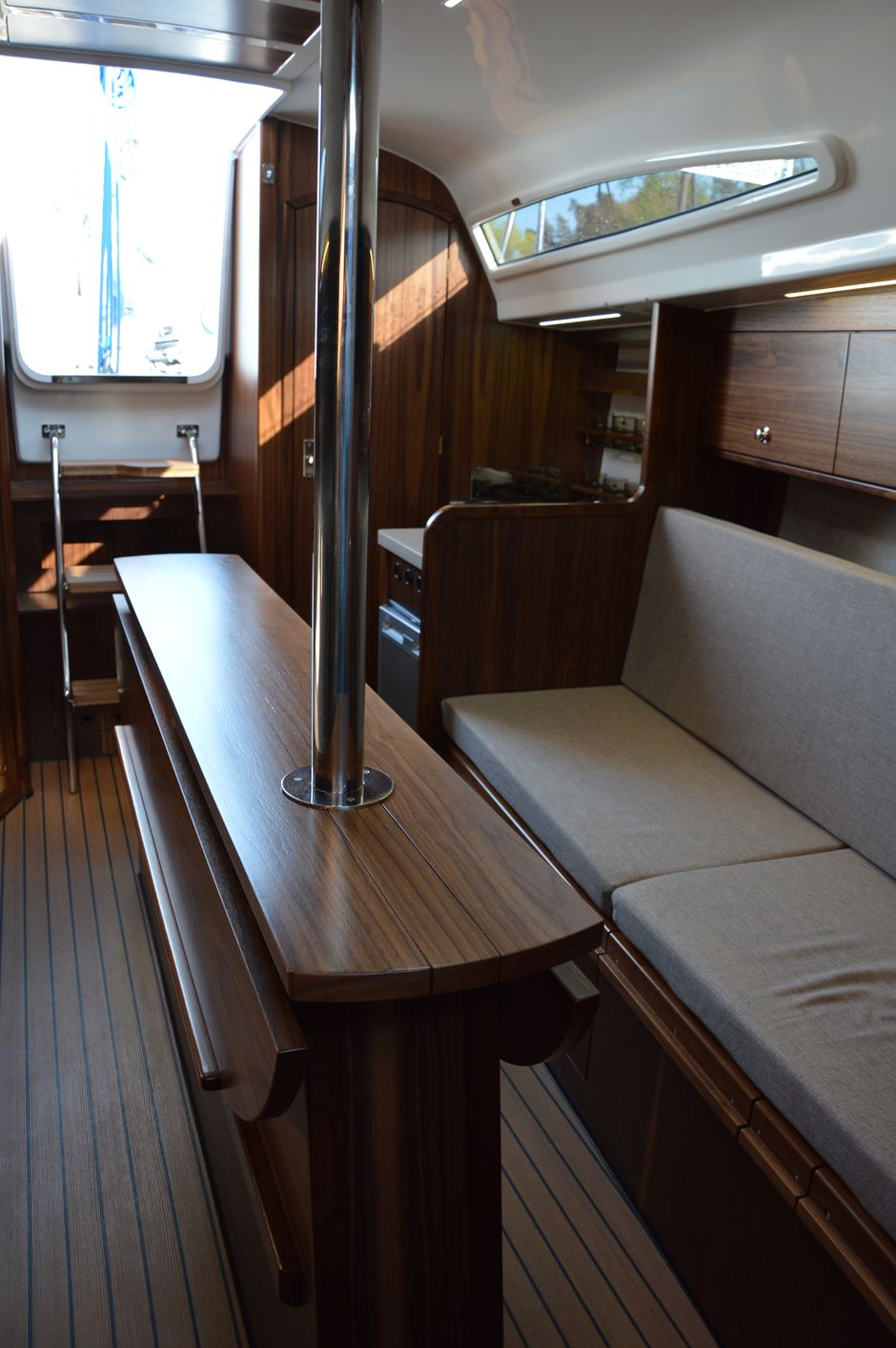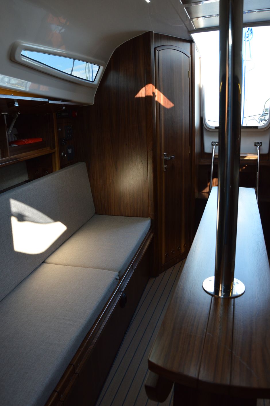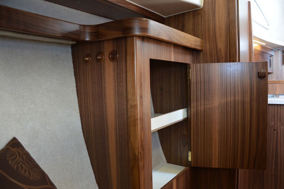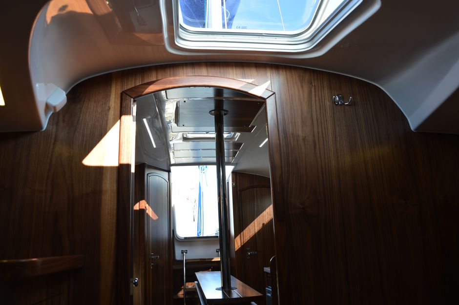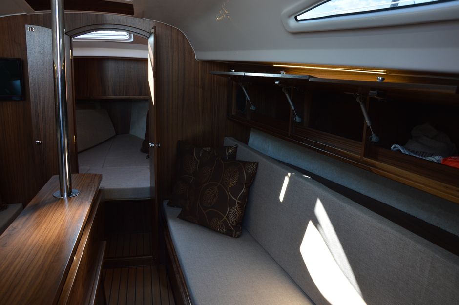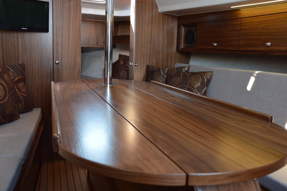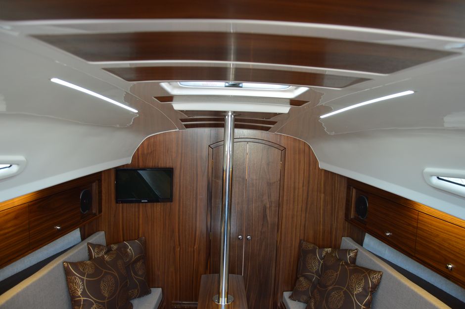 Atrakcyjna, dynamiczna sylwetka jachtu połączona z ergonomicznym ukształtowaniem pokładu oraz dopracowanymi detalami jest odzwierciedleniem dyskretnej elegancji.Podwyższona stateczność poprzeczna pozwala na zwiększenie powierzchni ożaglowania i prędkości przy słabszych wiatrach dając również poczucie komfortu i bezpieczeństwa w trudniejszych warunkach. Kształt kadłuba został zaprojektowany w sposób umożliwiający osiągnięcie wysokich prędkości oraz manewrowości i lekkości prowadzenia dające prawdziwą radość z żeglugi. Jacht został wyposażony dodatkowo w ekspress do kawy, echosonde Bidata i prysznic w kokpicie.