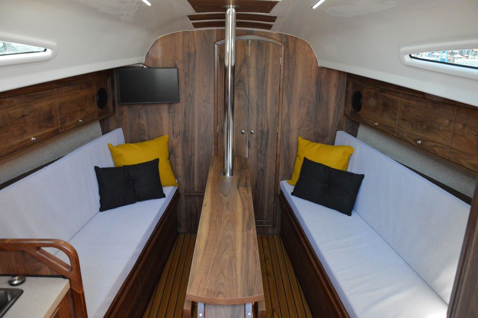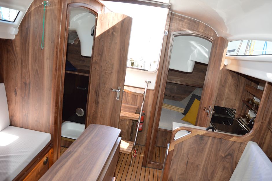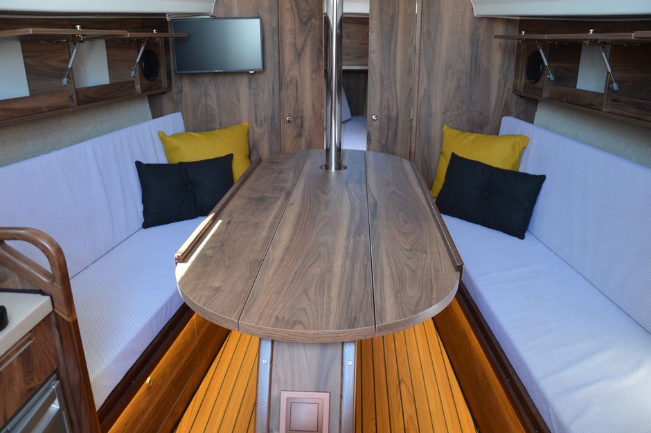Atrakcyjna, dynamiczna sylwetka jachtu połączona z ergonomicznym ukształtowaniem pokładu oraz dopracowanymi detalami jest odzwierciedleniem dyskretnej elegancji.Podwyższona stateczność poprzeczna pozwala na zwiększenie powierzchni ożaglowania i prędkości przy słabszych wiatrach dając również poczucie komfortu i bezpieczeństwa w trudniejszych warunkach. Kształt kadłuba został zaprojektowany w sposób umożliwiający osiągnięcie wysokich prędkości oraz manewrowości i lekkości prowadzenia dające prawdziwą radość z żeglugi. Zamieszczone zdjęcia są zdjęciami poglądowymi. Jacht będzie wyglądał identycznie jak Antilia 26CC - Martinique. Wyposażony dodatkowo w echosonde B&G i prysznic w kokpicie.